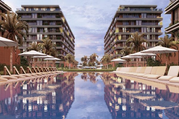 The panoramic windows of the apartments offer breathtaking views of the sea and landscaped courtyards adorned with palm trees and walking alleys. The territory features spacious swimming pools and relaxation areas, creating a resort-like atmosphere 24/7.