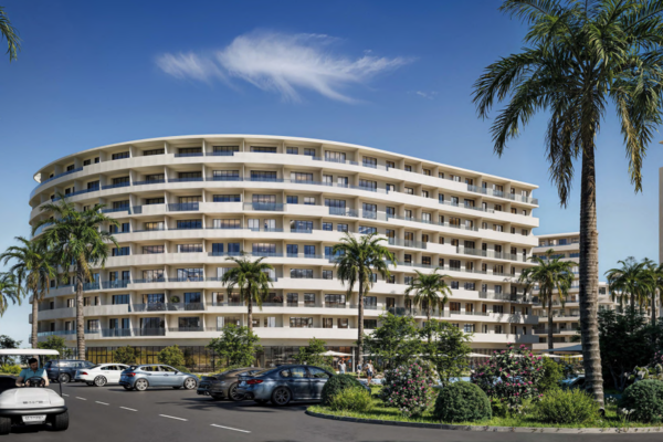 The architecture of the complex is executed in a modern minimalist style with elements reflecting the atmosphere of the southern coastline.